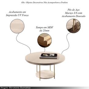 Material da Estrutura: MDF de 25mm e 15mm Peso Suportado: Até 5 Kg distribuídos Pés: Aço Maciço 3/8 Tampo: MDF de 25mm Acabamento: Impressão UV Fosca Conteúdo da Embalagem: 1 Mesa de Centro Acompanha Manual de Montagem: Sim