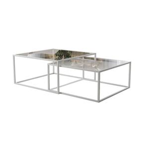 Mesa De Centro Industrial Moderna Atemporal Duo Catarina Branco E Tampo De Vidro