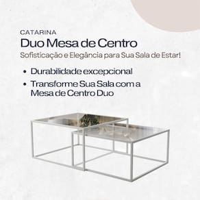 A Mesa De Centro Duo Catarina combina modernidade e praticidade em um design industrial atemporal. Com estrutura em aço carbono e tampo de vidro temperado, oferece resistência e leveza visual, sendo ideal para compor a decoração de salas de estar modernas. O conjunto de duas mesas de alturas diferentes permite o uso de forma combinada ou separada, trazendo versatilidade e funcionalidade ao ambiente. Compacta, elegante e funcional, é perfeita para apoiar objetos decorativos, bandejas ou itens de uso diário, complementando a decoração com estilo.