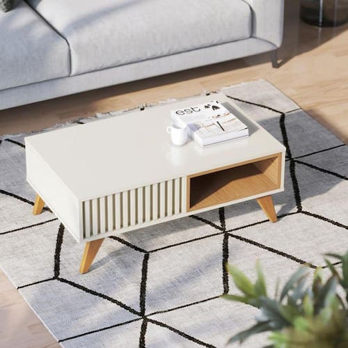 Inspirada no estilo retrô, a mesa de centro Jeri é um móvel prático e funcional. Ideal para compor diversos espaços da casa, como sala de estar, sala de tv ou até mesmo em salas de espera de ambientes de escritório, servindo como apoio para revistas, vasos e demais objetos decorativos. Pode ser utilizada de ambos os lados, pois possui o design simétrico com nichos internos em cada lado e pés em madeira maciça.
