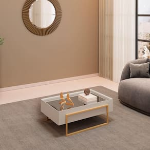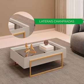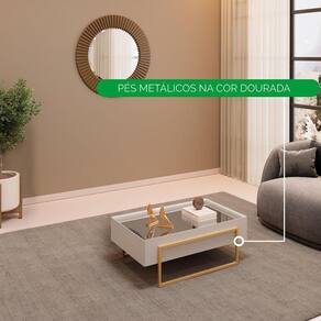 Mesa De Centro Kika De Sala Hall Moderna Com Espelho Pes Em Metal Bali Com design moderno e sofisticado, a Mesa de Centro Kika é o complemento perfeito para deixar sua sala mais elegante e funcional.Inspirada na mesma linha do Aparador Kika, ela combina perfeitamente em ambientes contemporâneos, unindo charme, praticidade e tampo conta com espelho aplicado, um detalhe que adiciona brilho e destaque à decoração, refletindo a luz e ampliando a sensação de espaç laterais chanfradas e os pés metálicos com pintura epóxi dourada reforçam o visual requintado do móvel, criando uma combinação equilibrada entre o moderno e o cláões:Altura: 31,5cmLargura: 91,5cmProfundidade: 49cmObservações:- Produzida em MDF e MDP de reflorestamento, com excelente resistência- Acabamento em impressão UV alto brilho e texturizada- Tampo com espelho aplicado- Laterais chanfradas com acabamento refinado- Ideal para salas de estar modernas e sofisticadas