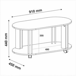 Características: Design ovalado Bordas arredondadas Rodízios Estrutura em MDF