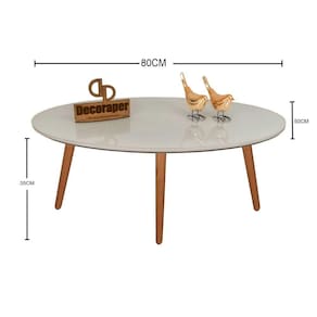 Mesa De Centro Oval Laqueada Com Vidro Pé Palito 80x50 Off White