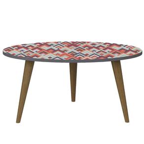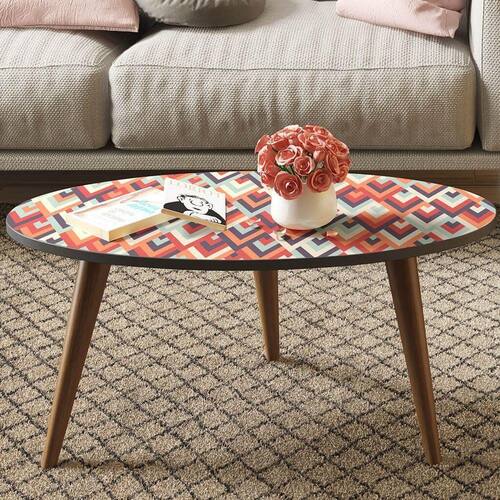 Mesa de Centro Oval Retrô Grafite Estampa Vermelha Lilies Móveis