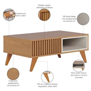 Peças nas tonalidades Freijó e Off White Matte com acabamento em pintura UV fosco.
