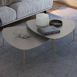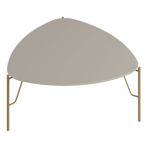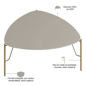 A Mesa de Centro Alta Alef, da Lyam Decor, reinventa o conceito de móveis para sala de estar e living com seu formato triangular e cantos arredondados, unindo o estilo orgânico ao industrial através de pés metálicos robustos.