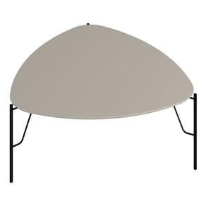 A Mesa de Centro Alta Alef, da Lyam Decor, reinventa o conceito de móveis para sala de estar e living com seu formato triangular e cantos arredondados, unindo o estilo orgânico ao industrial através de pés metálicos robustos.