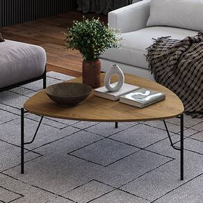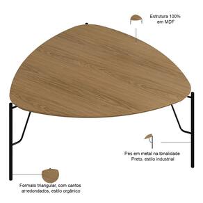 A Mesa de Centro Alta Alef, da Lyam Decor, reinventa o conceito de móveis para sala de estar e living com seu formato triangular e cantos arredondados, unindo o estilo orgânico ao industrial através de pés metálicos robustos.