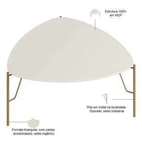 Mesa de Centro Para Sala de Estar Baixa Pés Industrial Dourado Alef I03 Luna - Lyam Decor - Bege Claro