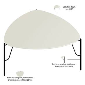A Mesa de Centro Baixa Alef, da Lyam Decor, reinventa o conceito de móveis para sala de estar e living com seu formato triangular e cantos arredondados, unindo o estilo orgânico ao industrial através de pés metálicos robustos.