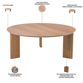 Já os pés robustos em madeira maciça de eucalipto não somente garantem estabilidade, como também trazem um ar de sofisticação ao espaço. O destaque fica para o detalhe chanfrado do tampo, que adiciona um charme especial e um toque de elegância a qualquer decoração. Perfeita para ser o centro das atenções, a mesa de centro redonda é versátil o suficiente para complementar sua sala de estar ou atuar como uma peça funcional em recepções e salas de espera.