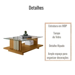 Mesa de Centro para Sala Frizz Tampo Vidro Madetec