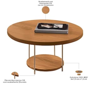 Com um tampo em MDF de 25mm, essa mesa de centro redonda combina diferentes materiais, criando uma composição leve e marcante que se destaca em qualquer ambiente. Os pés de aço maciço com acabamento dourado trazem um toque de glamour, inspirados no design industrial, ao passo que as linhas curvas promovendo uma fluidez que encanta os olhos, seguindo a proposta do estilo orgânico. E outras palavras, a mesa de centro Allure não é apenas um complemento, mas um convite à convivência, perfeita para realçar momentos especiais em sua sala de estar.