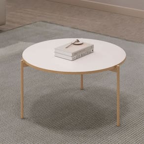Com design moderno e sofisticado, ela traz leveza ao ambiente, criando um espaço mais elegante e acolhedor para sua Sala de Estar. Seu tampo usinado em formato circular, com borda adornada por pintura PU dourada, destaca ainda mais o requinte do móvel. A estrutura da Mesa de Centro Redonda é reforçada por pés metálicos cilíndricos dourados, garantindo resistência e beleza em uma composição harmônica. Além de ser durável, a Mesa de Centro Para Sala facilita a limpeza e segue as mais atuais tendências de decoração, tornando-se a escolha perfeita para quem deseja transformar o espaço com um toque de sofisticação.