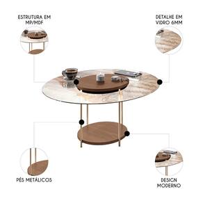 A Mesa de Centro Redonda Tampo de Vidro Sky Castanho, da HB Móveis tem um design sofisticado e contemporâneo, combinando diferentes materiais de forma harmoniosa, criando uma peça leve e ao mesmo tempo marcante.