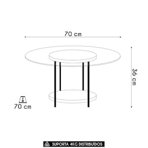 Dimensões do Produto Largura: 70 cm. Altura: 36 cm. Profundidade: 70 cm. Peso: 9 Kg.