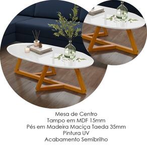 Adicione charme e funcionalidade para sua sala com a Mesa de Centro, com tampo chanfrado no formato oval produzido em MDF de 15mm, e pés em madeira maciça taeda de 35mm. A pintura UV com acabamento semibrilho torna essa mesa o destaque perfeito para valorizar a decoração da sua casa. Este móvel chegará em sua casa separado em 01 volume.