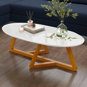 Mesa De Centro Sala De Estar Classic 90 Cm Branco Nature Tebar Branco Nature