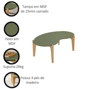 Mesa de Centro Sala de Estar Florida 1,05m Verde Floresta/Freijó - Lukaliam Móveis