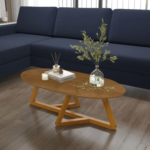 A Mesa de Centro Vintage Oval Nature oferece um toque natural e sofisticado para sua sala. O design oval e o acabamento em tons de madeira são ideais para quem busca uma peça charmosa e atemporal, combinando com diversos estilos de decoração.