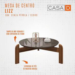 Marca: Casa D; Linha: Sala; Modelo: Mesa de Centro Lizz; Formato do móvel: Redonda; Material do tampo: MDF 25 mm com bordas com acabamento Soft PU; Material dos pés: Madeira maciça; Acabamento: Pintura Print Wood; Altura: 32 cm; Largura: 64 cm; Profundidade: 64 cm; Peso suportado: 15 kg; Requer montagem: Sim (kit montagem incluso); Condição do item: Novo; É kit: Não; Altura da embalagem: 6,8 cm; Largura da embalagem: 66 cm; Comprimento da embalagem: 66 cm; Peso: 7,1 kg; Embalagem do envio: Papelão e plástico; Informações adicionais: - Os objetos que ambientam as fotos não acompanham o produto; - O produto será entregue desmontado; - É de inteira responsabilidade do cliente a montagem do produto e/ou instalação, custos de transporte por escadas e/ou elevadores, guincho ou içamento, assim como possíveis irregularidades provenientes de manuseio inadequado; - Embora o produto acompanhe o manual de montagem, verifique a complexidade antes de decidir montá-lo sozinho, recomendamos que contrate um profissional de sua confiança; - Fique atento, nossas cores podem sofrer alterações dependendo do seu monitor; - ANTES DE MONTAR O SEU PRODUTO, certifique-se que todas as instruções dispostas no manual, bem como todas as ferragens descritas, estejam presentes dentro da embalagem. Verifique se há alguma peça danificada, caso esteja, prestaremos a devida assistência dentro do prazo da garantia.