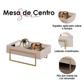 Está montando sua sala? Apresentamos para você esta bela mesa de centro da linha Suri. Seu tampo conta com espelho aplicado, agregando elegância e amplitude ao ambiente, enquanto as laterais chanfradas destacam um design moderno e refinado. Os pés em metal na cor dourado um charme a mais, além da estabilidade. Fabricado pela DJ Móveis, é desenvolvido em MDP/ MDF de alta qualidade, vindo de madeira de reflorestamento, garantindo resistência, durabilidade e compromisso com a sustentabilidade. Sendo a escolha perfeita para quem busca sofisticação e praticidade, valorizando qualquer ambiente com beleza e estilo. Confira e aproveite!