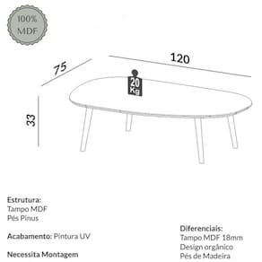 Características: Tampo em MDF Pés em Madeira Pinus Acabamento em Pintura UV Design Orgânico