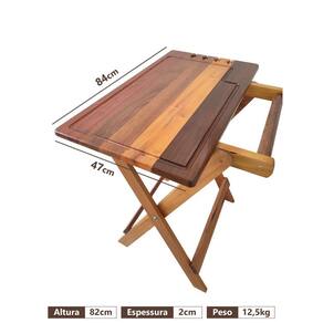 Mesa produzida com madeiras nobres (de lei), garantindo alta qualidade e durabilidade. Não deixa gosto no alimento e pode ser utilizada em ambiente externo.
