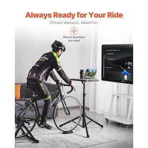 VEVOR Mesa de ciclismo, treinador de bicicleta estacionária dobrável ajustável e mesa de esteira com suporte de triângulo, antiderrapante para treinador de bicicleta com vários compartimentos, mesa de - Funcionalidade versátil: Se você estiver usando uma bicicleta interna ou esteira, uma mesa de bicicleta é a escolha ideal para melhorar a conveniência e a eficiência em casa. A mesa requer apenas um ajuste mínimo na colocação, reduzindo as preocupações de compatibilidade com a largura da bicicleta ou da esteira. Também pode funcionar como uma mesa de pé, estação de tatuagem, mesa de transmissão ao vivo ao ar livre ou suporte de projetor, atendendo às suas diversas necessidades. - Amplo espaço de armazenamento: a mesa oferece armazenamento multifuncional, com uma superfície espaçosa de 50 cm de comprimento que suporta até 20 kg. Tapetes antiderrapantes mantêm seus dispositivos seguros, enquanto os slots são ideais para tablets, telefones e outros dispositivos. Cada lado possui um porta-copos para facilitar a hidratação durante o treino. - Altura ajustável: ajustando os parafusos fixos nas hastes de suporte, a altura da mesa pode ser suavemente elevada de 860 mm para 1300 mm, oferecendo flexibilidade para atender a diferentes alturas do corpo e preferências de uso para o máximo conforto. Experimente nossa mesa de ciclismo ajustável em altura! - Fácil de transportar e armazenar: o design flip-lock na parte inferior permite uma dobra rápida e fácil. Uma vez dobrada, a mesa de bicicleta pode ser facilmente movida para qualquer local, economizando espaço de armazenamento e proporcionando maior conveniência ao fazer a transição entre espaços internos e externos. Portanto, o armazenamento não é mais um problema para você por possuir esta mesa de ciclismo! - Moldura estável e durável: mesmo sob pressão, a mesa permanece estável e não se inclinará para frente. A mesa é feita de material ABS durável, e a estrutura de suporte do tubo de aço, combinada com o design triangular do pé, garante estabilidade extra, segurança e durabilidade a longo prazo durante o uso.