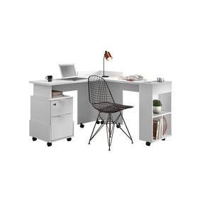 Cor: Jequitiba | Altura: 88 cm | Largura: 137,5 cm | Profundidade: 50 cm | Comprimento: 50 cm | Requer Montagem: Sim | Quantidade de Caixas de Embalagem: 2 | Inclui Manual de Montagem: Sim | Materiais da escrivaninha: MDP | É em forma de L: Sim | Cor: Branco