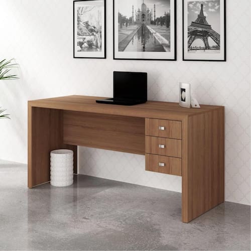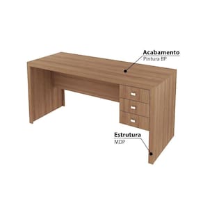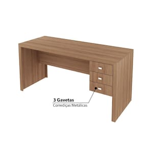 Características - Amêndoa - Estrutura: MDP - Acabamento: BP - 3 Gavetas - Costas na cor do móvel - Pés 4 sapatas em PVC - Fundo das gavetas de fibra 3 mm - Corrediças metálicas - Puxadores de plástico - Suporta: Tampo até 15 Kg | Gaveta 3 kg - Móvel entregue desmontado - Marca: Tecno Mobili