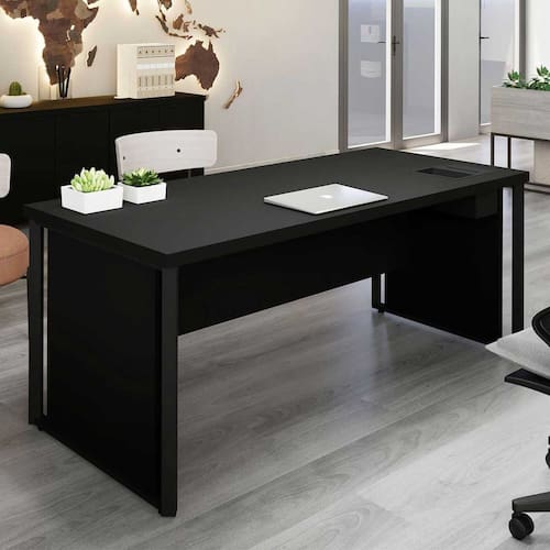 Mesa de Escritório 180cm Diretor com Caixa de Tomadas e Porta Objetos Corporate Preto