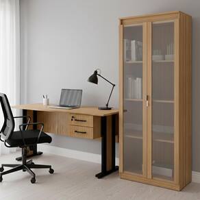 O Kit ME4193XAM3111 une estilo e praticidade para valorizar o seu escritório, criando um ambiente mais organizado, agradável e eficiente para o dia a dia, sendo fabricado com estrutura em madeira MDP de 15 mm, tampo em MDP de 25 mm e revestimento em material BP, com acabamento traseiro no mesmo padrão de cor e material, a Mesa para Escritório ME4193 conta com 02 gavetas que suportam até 3 kg cada, sendo uma delas com trava por chave, puxadores em metal e corrediças telescópicas, além de pés em madeira MDP de 25 mm com sapatas reguláveis, suportando até 21 kg, já o Armário Multiuso AM3111 conta com duas portas de vidro, puxadores cromados, dobradiças metálicas, sapatas e 04 prateleiras que suportam até 4 kg cada, além de amplo espaço interno para organizar seu ambiente. NÃO ACOMPANHA CADEIRA NEM DEMAIS DECORAÇÕES. Este produto será entregue em 2 volumes.