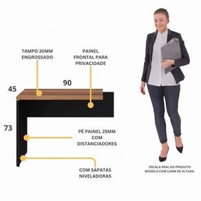 Dimensões do Produto Montado: Altura: 73cm | Largura: 113cm (total) - 90cm (tampo) | Profundidade: 45cm *Você pode consultar as medidas detalhadas na imagem técnica do produto.