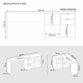 A Mesa de Escritório Office NT 2060 da Notável Móveis, é versátil e espaçosa, oferece para você um local de trabalho ou estudo que permite organizar melhor seus objetos, ela se adequa a sua necessidade. O gaveteiro pode ser montado no Lado Direito ou Lado Esquerdo. Conta com 2 Gavetas e 3 Prateleiras, oferecendo um amplo espaço para armazenar e manter seus objetos seguros. Sua estrutura em MDP com espessuras de 12mm, 15mm e 25mm, juntamente com as corrediças metálicas das gavetas, garantem durabilidade e resistência excepcionais ao móvel. Na cor Freijó Trend com acabamento em Pintura U.V, agrega sofisticação ao ambiente. Aproveite a qualidade da Notável Móveis!