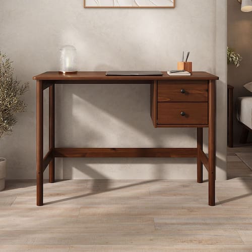 A Escrivaninha Para Home Office De Madeira Maciça Marlo é a peça que transforma qualquer quarto ou escritório em um ambiente mais organizado, bonito e funcional. Com duas gavetas amplas, laterais em MDP preto e corrediças telescópicas, ela guarda seus itens de forma prática, mantendo a superfície sempre livre para trabalhar, estudar ou se arrumar.