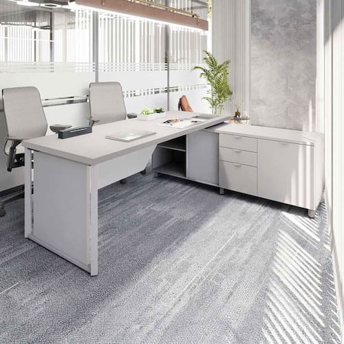 Mesa Diretor em L 1,80m F5 Office com armário lateral. Funcional e elegante, ideal para escritórios e salas de direção.