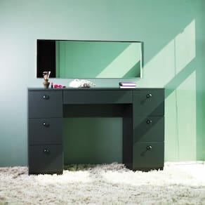 A Mesa de escritorio Ditália é a escolha perfeita para adicionar um toque de sofisticação à decoração de seu escritório ou área de estudo. Com suas sete gavetas espaçosas, esta peça oferece um local ideal para organizar todos os elementos essenciais de sua rotina, desde documentos importantes até material de escritório e de estudo. Isso possibilita manter seu espaço sempre em ordem e com um visual encantador.