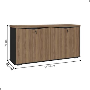 O Balcão segue o mesmo layout e mesma qualidade. Com quatro portas, uma prateleira fixa a cada duas portas e chave para travamento.