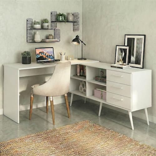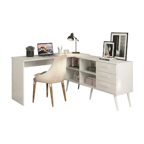 Mesa de Escritório em L com 3 Gavetas Porto Multimóveis MP6046 - Branco