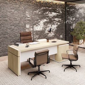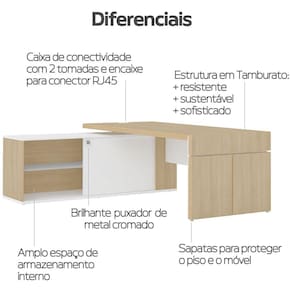 Mesa de Escritório em L Diretoria Connect Carvalho/Branco