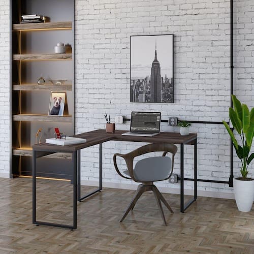 A Linha Kuadra tem seu design com inspiração no estilo industrial, que remete muito a decoração usada nos Lofts das grandes metrópoles nos anos 60 e 70. Harmonizando o metal e os tons de madeira, foram projetados móveis versáteis e com estilo, que podem compor ambientes flexíveis cheios de personalidade, perfeitos para você decorar sua casa ou seu trabalho, tendo um resultado que caminha do estilo rústico ao moderno. Produto Montado: Sim Acompanha Manual de Instalação: Sim Ambiente Principal: Escritório codigo_ean: 7909903417188 Complexidade da Montagem: Média: pode ser montado por mais de uma pessoa e/ou necessite de maior conhecimento para montagem Cor: Nogal / Est.Preta Cor do Produto: Nogal / Est.Preta Cor Interna: Nogal Escala de Brilho: Fosco Espessura do Tampo: 30 mm Formato: Em L Itens Inclusos: 1 Mesa L, 1 Kit Ferragens e 1 Manual de Montagem Manual de Montagem e Instalação: https://product-hub-prd.madeiramadeira.com.br/868572/documents/3c8979f0-a17b-4989-8086-f035f80c5df618953manualnovomesakuadral.pdf Material dos Pés: Aço Material Principal: MDP Montagem Flex: Sim Necessita Montagem: Sim Origem do Produto: Nacional Peso: 24,65 kg Possui Passa Cabos: Não Possui Portas: Não Possui Prateleiras: Não Possui Suporte para Teclado: Não Recomendações de Uso, Manutenção e Limpeza: Para a limpeza, utilize flanela seca ou pano macio levemente umedecido em água. Utilize um pano seco em seguida. Evite contato com produtos químicos (solventes, thinner, acetona, etc) e não utilize nenhum tipo de esponja de aço. Sapatas Niveladoras: Sim Sistema de Montagem: Parafusos e Ponteiras Niveladora Suporta Até (kg): 45 kg Ean: 7909903417188