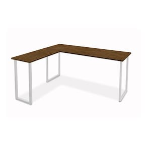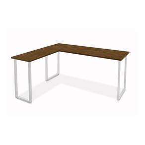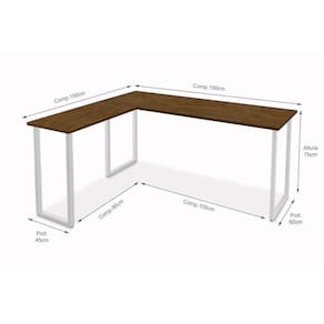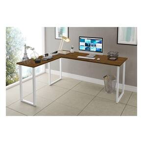 Mesa De Escritório Em L Estilo Indústrial Klm Móveis Amadeirado Com Branco Escrivaninha em L para estudo e escritório estilo industrial decorativo, ideal para qualquer ambiente, deixando o espaço mais moderno e prático. Produto em aço carbono com pintura em pó e tampos em MDP com pintura UV.