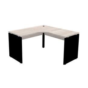 Mesa de Escritório em L Pé Painel PE25 em MDP 125 x 125 x 60 cm Cor Nogueira CasaBlanca e Base Preta - Bege Claro