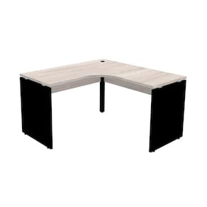 Mesa de Escritório em L Pé Painel PE25 em MDP 145 x 145 x 60 cm Cor Nogueira CasaBlanca e Base Preta - Bege Claro