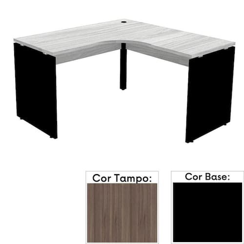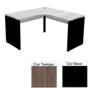 Mesa de Escritório em L Pé Painel PE25 em MDP 155 x 155 x 60 cm Cor Walnut e Base Preta - Marrom