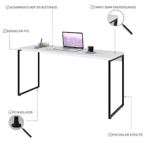 Então, que tal começar a organizar o seu cantinho de trabalho com a Mesa Escrivaninha Dynamica, da Mpozenato?! Essa mesa de escritório só tem pontos positivos, a começar pela sua qualidade, já que o tampo é fabricado em MDP com acabamento BP Acetinado e fitas de borda de PVC, o que garante maior resistência e durabilidade ao produto.