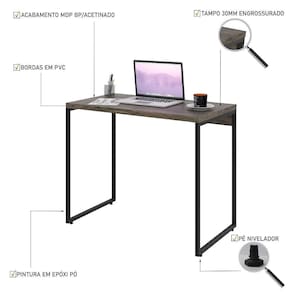 Já a estrutura metálica possui acabamento com pintura epóxi-pó, o que cria um ar mais moderno e despojado, remetendo ao estilo industrial. Ah, não podemos esquecer das sapatas niveladoras que proporciona adaptação em qualquer piso. Além disso, a sua medida compacta com 90cm se adequa em todos os ambiente, principalmente aqueles aonde não se tem muito espaço. E o melhor de tudo é que você vai ter um ambiente de trabalho organizado e cheio de personalidade.