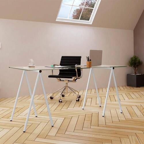 Produzido em aço carbono e vidro temperado. material : aço carbono brancoTampo: vidroObs: limpar com pano seco.Mesa De EscritÃrio Escrivaninha Cavalete Itaim Branco