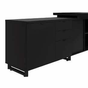 Mesa de Escritório Executiva 200cm com Armário Lateral e Caixa de Tomadas Corporate Preto